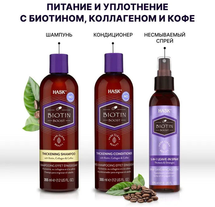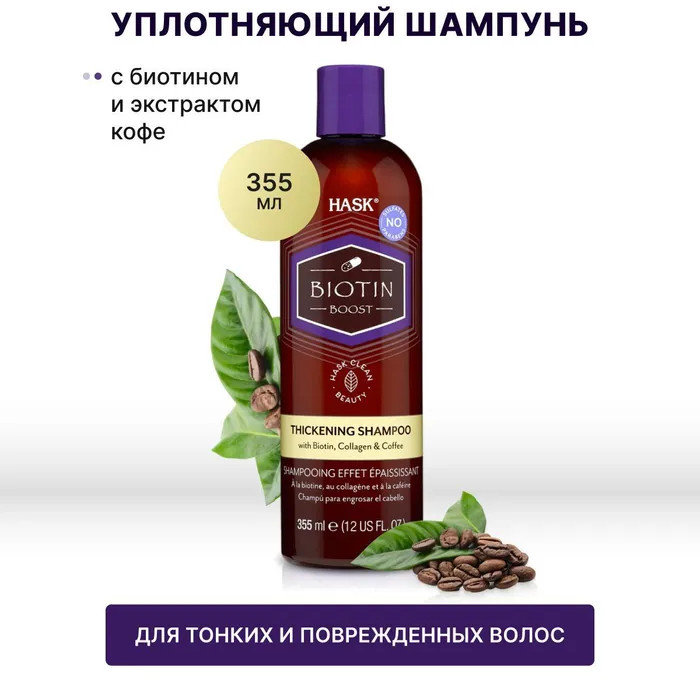 Hask Шампунь для волос уплотняющий с биотиноммягкость волос блеск волос аромат кофе В данный момент этот товар отсутствует в продаже. Возможно, у нас найдется аналогичный или похожий товар здесь. Серия: Biotin boost Уплотняющий шампунь с биотином идеально подходит для тонких и повреждённых волос. Насыщенный питательной смесью биотина, коллагена и кофе, шампунь бережно очищает, укрепляет, придаёт визуальный эффект плотности, а также поднимает волосы у корней, способствуя их росту. Для достижения наилучшего результата используйте совместно с кондиционером HASK. |