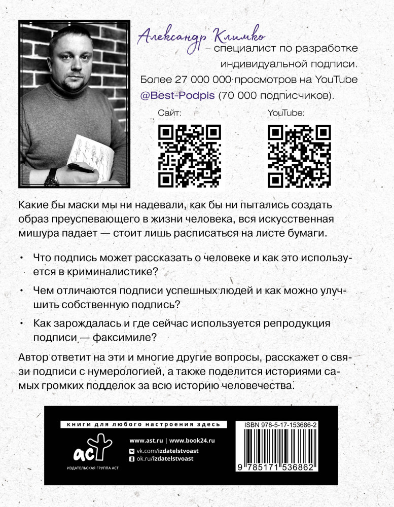 💳 Оплатить за товар можно при получении 🇰🇿 Есть бесплатная доставка по Казахстану от 1 дня 🎁 Копите бонусы с каждой покупки Серия: Звезда YouTube Какие бы маски мы ни надевали, как бы ни пытались создать образ преуспевающего в жизни человека, вся искусственная мишура падает — стоит лишь расписаться на листе бумаги. |