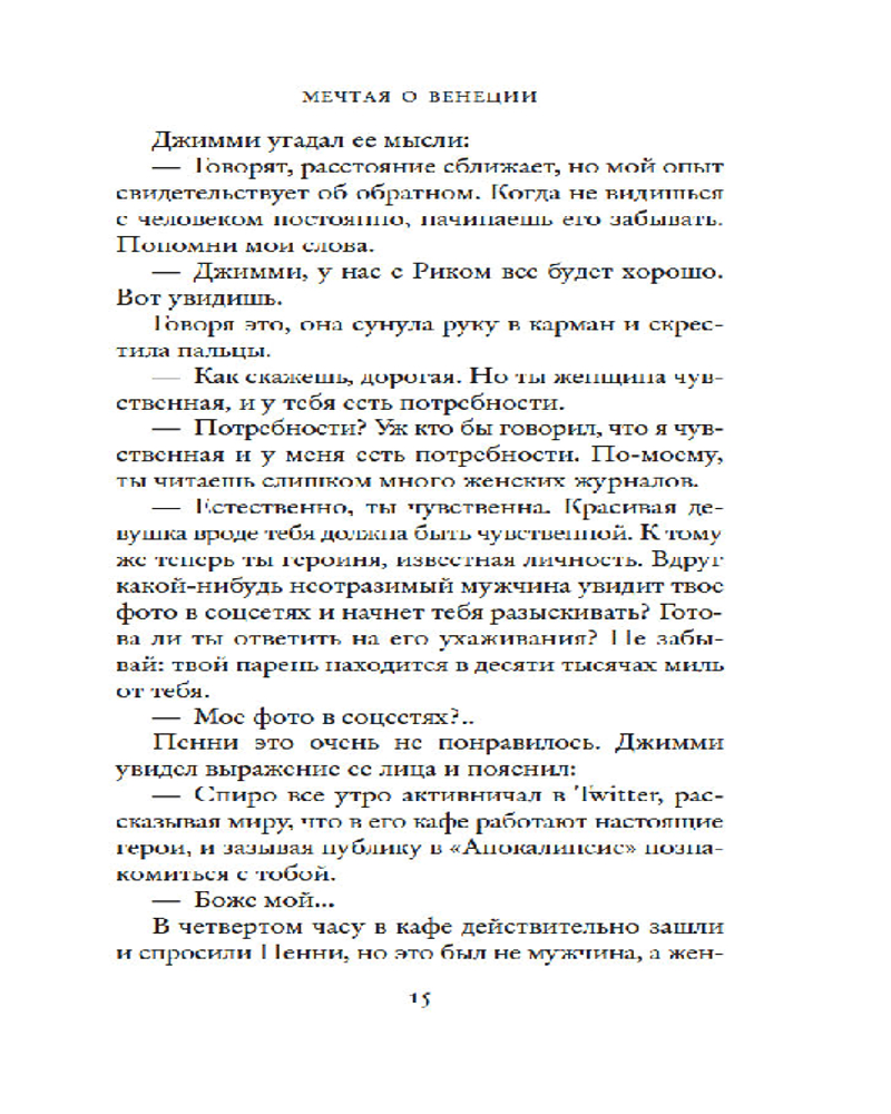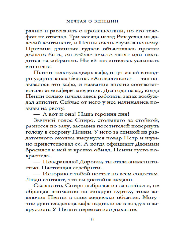 💳 Оплатить за товар можно при получении 🇰🇿 Есть бесплатная доставка по Казахстану от 1 дня 🎁 Копите бонусы с каждой покупки Серия: Мойес Джоджо Пенни Лейн мечтает о выставке своих картин в известной галерее и о Венеции. По ночам во сне она гуляет по улочкам этого прекрасного города и катается на гондоле, а днем возвращается к безрадостному существованию: работа в дешевом лондонском кафе и одиночество, ведь она недавно рассталась со своим парнем. Но жизнь Пенни круто меняется, когда она спасает младенца, чья коляска катится навстречу идущему поезду, и получает свои пятнадцать минут славы. К ней обращается дама с необычным предложением: заменить на мероприятиях и светских приемах ее босса Оливию, которая впала в депрессию после смерти отца. Оказывается, девушки похожи как две капли воды. Теперь Пенни может расплатиться с долгами за обучение, известная галерея заинтересовалась ее работами. И может быть, ей удастся исполнить свою мечту — побывать в Венеции — и найти там любовь... |