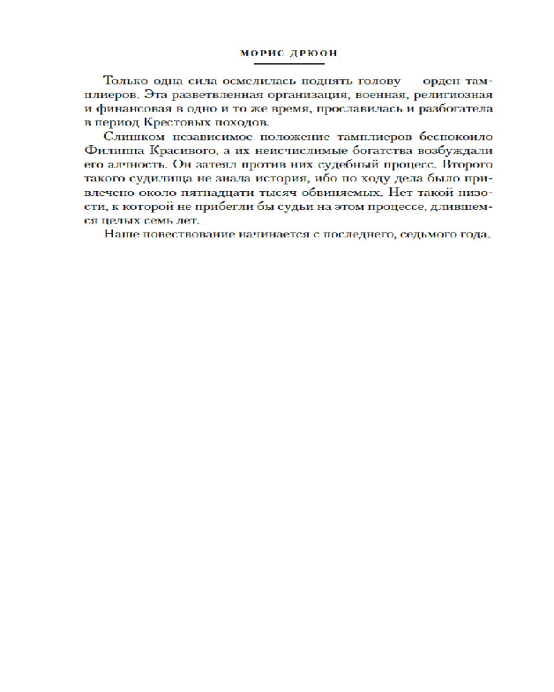 💳 Оплатить за товар можно при получении 🇰🇿 Есть бесплатная доставка по Казахстану 🎁 Копите бонусы с каждой покупки Серия: Иностранная литература. Большие книги «Проклятие на ваш род до тринадцатого колена!» — бросает из пламени костра Великий магистр ордена тамплиеров Жак де Моле в лицо королю Франции Филиппу IV Красивому. Это огненное пророчество сбудется: с 1314 года более полувека короли будут сменять друг друга на троне, но никто не задержится надолго. Дворцовые интриги, внезапные смерти, династические перевороты и кровавые войны будут сопровождать это мрачное шествие проклятых королей. |