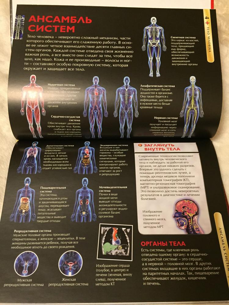 Очень яркая книжка с общими знаниями по анатомии человека, каждая статья сопровождается цветными иллюстрациями. Ребенку очень понравилось.