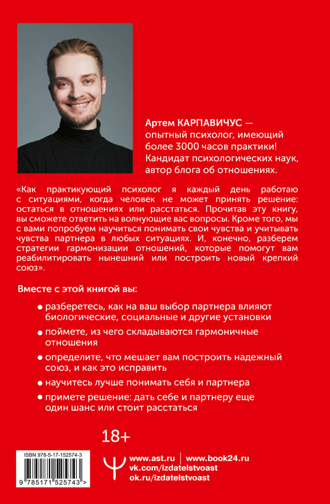 Недавно нашла данного автора на ютубе, книгу взяла спустя время, полезная информация по отношениям, помогает взглянуть на отношения более осознанно, построить гармоничные отношения, в которых каждому будет хорошо 🤗💗