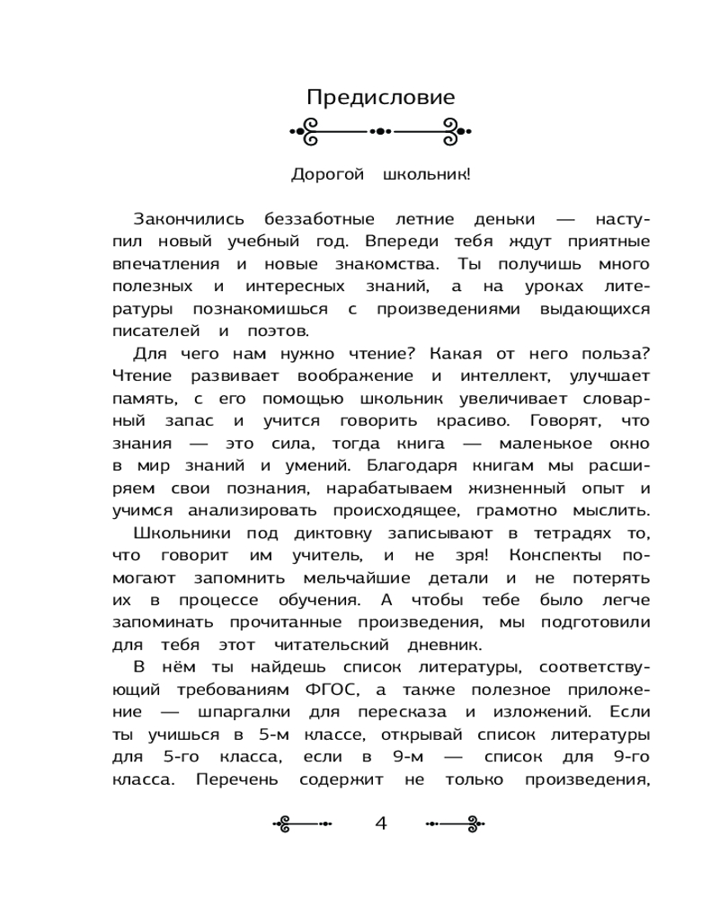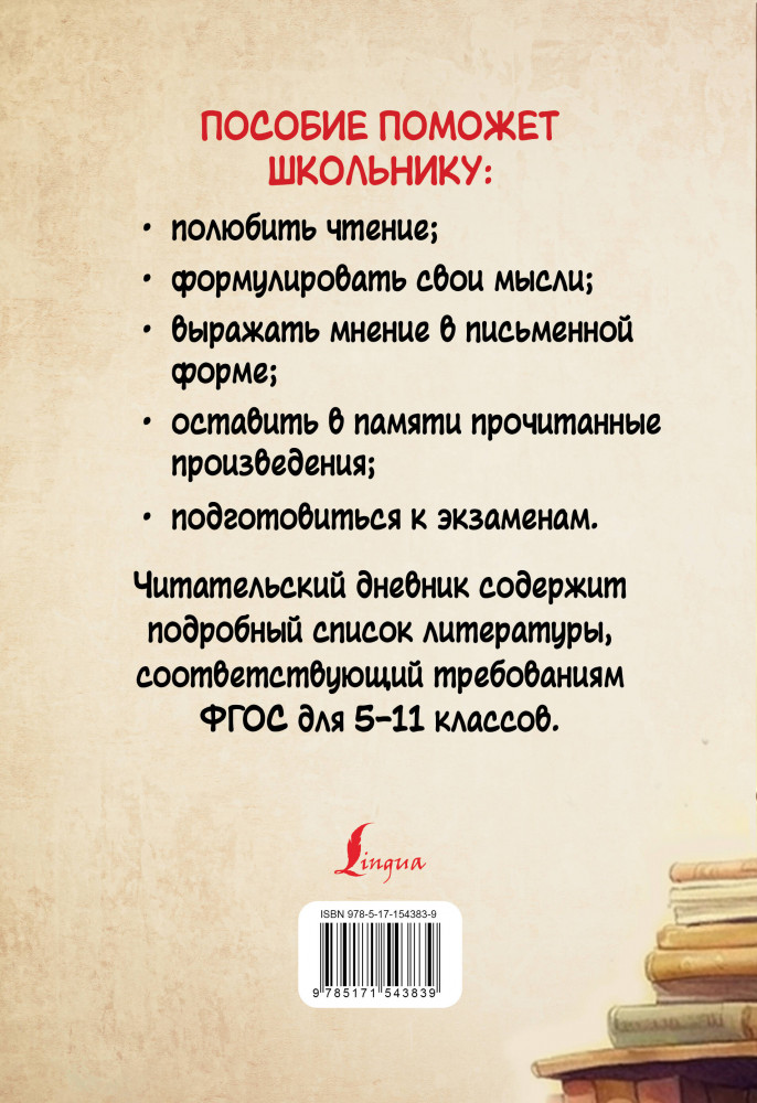 Дневник читательский с перечнем книг за школьный курс для средней и старшей школы+23