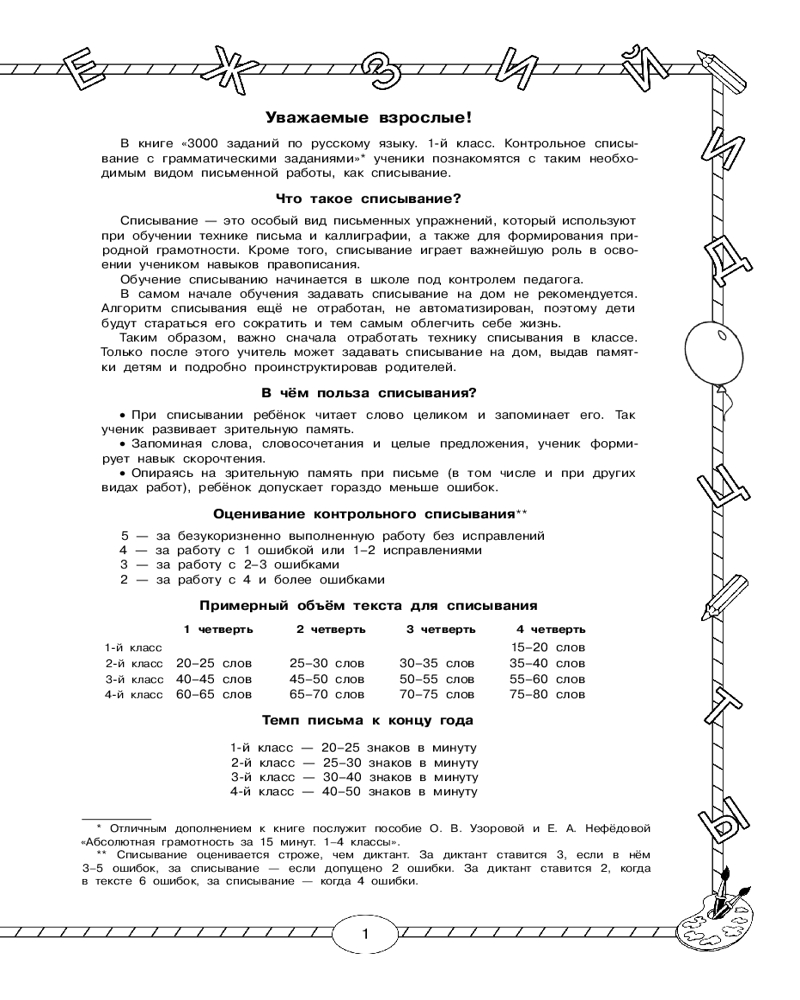 3000 заданий по русскому языку. 1 класс. Контрольное списывание с грамматическими заданиямиОльга Васильевна Узорова, Елена Алексеевна Нефедова +38