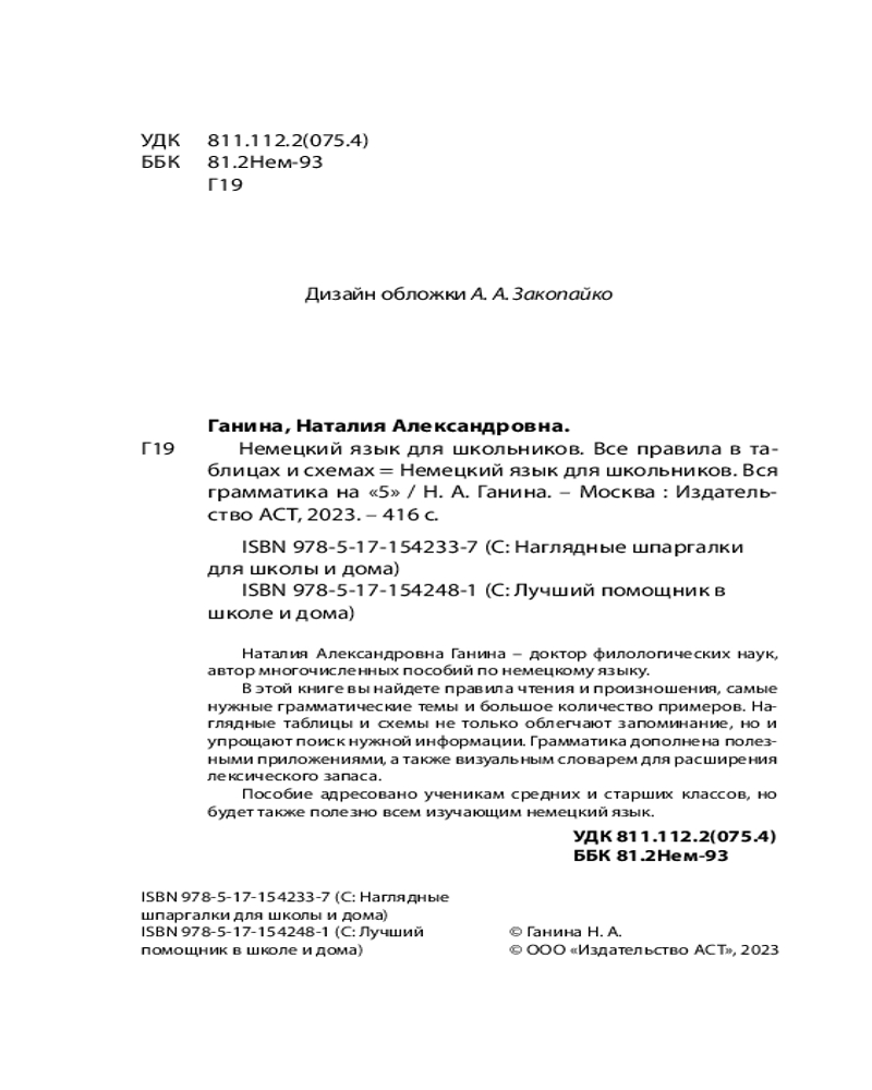 В данный момент этот товар отсутствует в продаже. Возможно, у нас найдется аналогичный или похожий товар здесь. Серия: Лучший помощник в школе и дома Наталия Александровна Ганина — доктор филологических наук, автор многочисленных пособий по немецкому языку.