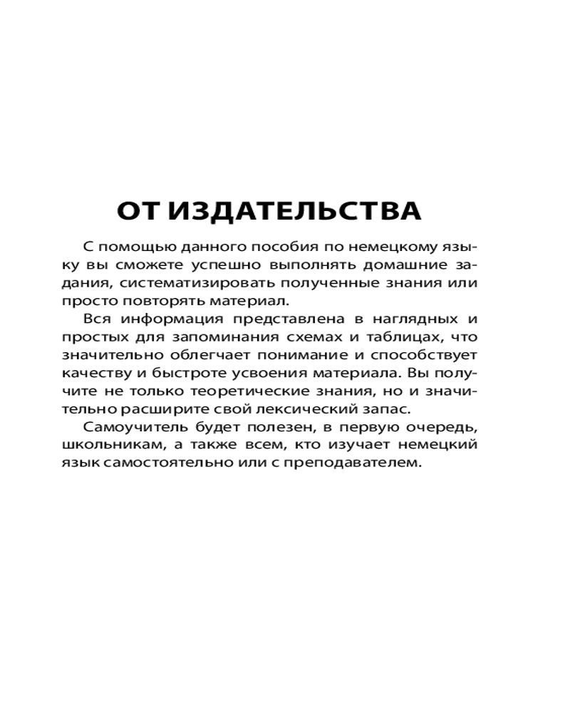 Пособие адресовано ученикам средних и старших классов, но будет также полезно всем изучающим немецкий язык. |