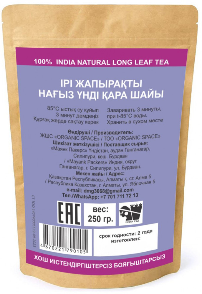 Organic Space GD Чай черный индийскийВ данный момент этот товар отсутствует в продаже. Возможно, у нас найдется аналогичный или похожий товар здесь. Индийский черный крупнолистовой байховый чай, высшего сорта. Продукт без красителей и ГМО. Страна изготовитель — Индия, расфасовано в Казахстане. |