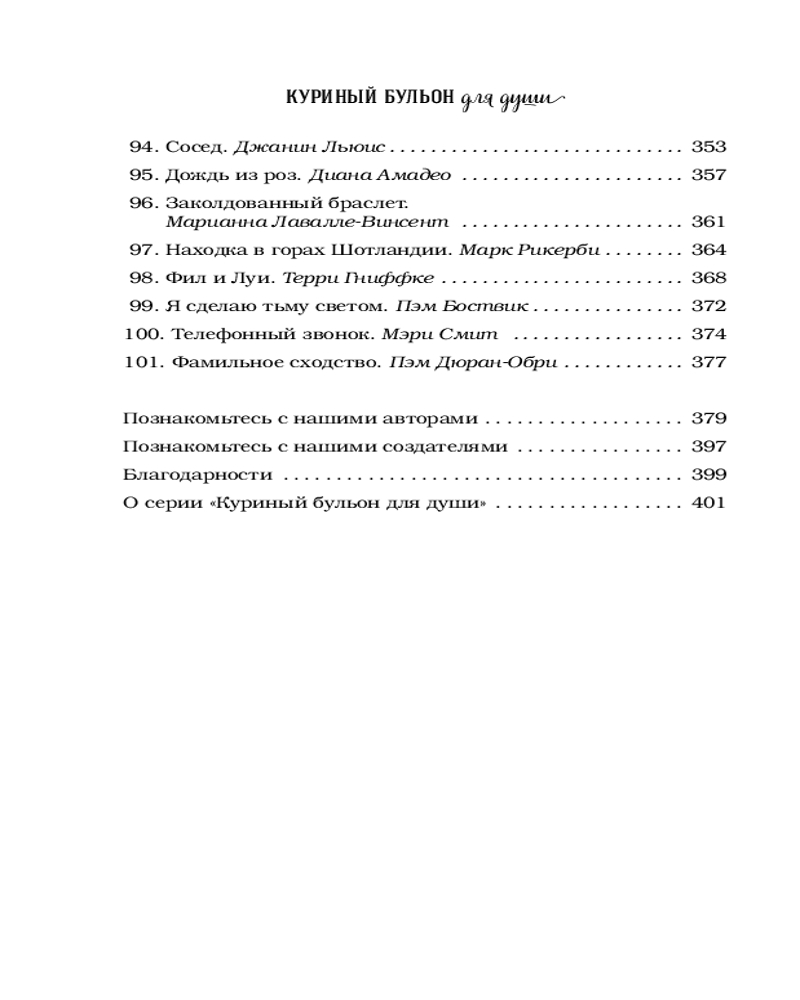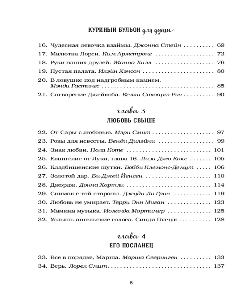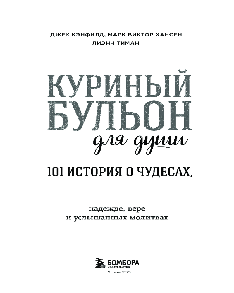 В данный момент этот товар отсутствует в продаже. Возможно, у нас найдется аналогичный или похожий товар здесь. Серия: Куриный бульон для души (обложка) История создания книги «Куриный бульон» вдохновляет не меньше, чем маленькие истории, из которых она состоит. Джек Кэнфилд и Марк Хансен, оба популярные мотивационные спикеры, любили свои выступления «приправить» парочкой вдохновляющих историй. После тренингов многие обращались к ним: «А где можно найти ту историю про девочку-скаута? Я бы купил книгу ее сыну», «А та история про парня и щенка — ее можно где-то прочитать?».