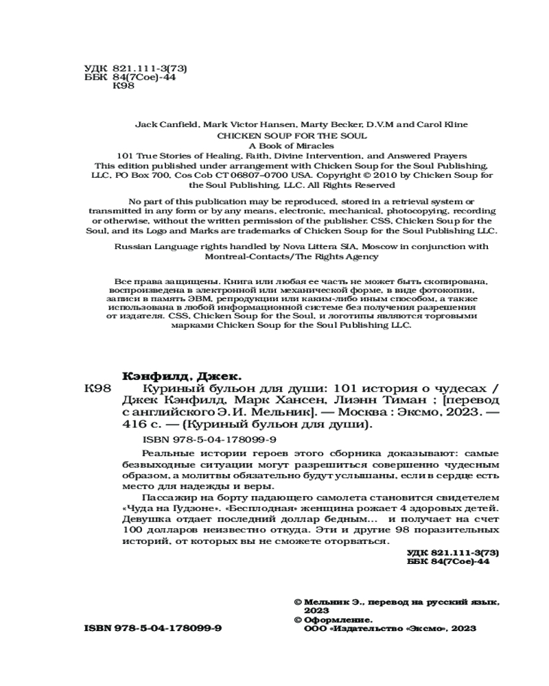 | Куриный бульон для души. 101 история о чудесах Марк Виктор Хансен, Джек Кэнфилд, Лиэнн Тиман