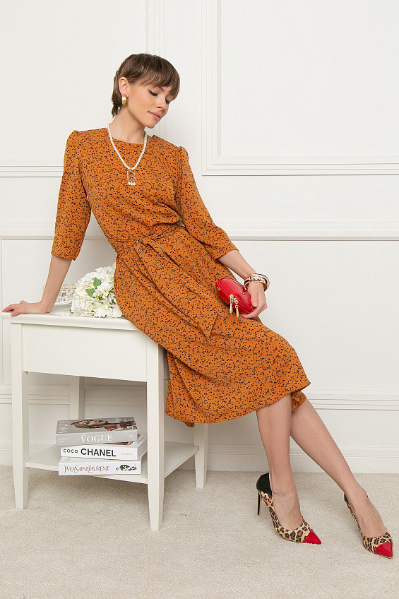 Платье очень женственное. Пошив идеальный. Сшито по великолепным лекалам. Выточки на груди на месте, талия, плечевой пояс , все хорошо, просто придраться не к чему. Размерной сетке соответствует. Покупала дочери у нее 46 размер, рост 164, но не маленькая грудь, третий размер, платье сидит прекрасно. Ткань скользкая (предупреждаю тех, кому такие не комфортны) практически не мнется. Не слишком лёгкое, довольно плотный материал, не просвечивает. Летом в нем будет жарко. Ткань красиво струится, складки на талии аккуратные, равномерные. К платью прилагается плотный, двойной пояс из такой же ткани, но с кожаным ремешком смотрится лучше. Очень приятная расцветка, не слишком яркая, чуть светлее, чем на фото сайта, принт не броский. Платье, что называется и в пир, и в мир. Однозначно рекомендую. Купила со скидкой и пожалела, что не взяла себе в другой расцветке. Не знала, как оно будет смотреться, подойдёт ли размер. Теперь знаю, что платья этого производителя достойные, обязательно куплю и себе. Спасибо производителю за качественный товар и флип КЗ за доставку. Собственно у Флип КЗ все, как всегда на высоте, начиная от разнообразия и упаковки товаров, до курьеров. Давно пользуюсь услугами интернет магазинов, Флип КЗ лучший по качеству обслуживания.