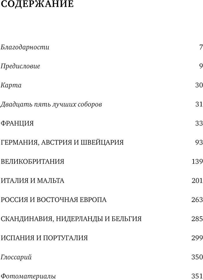 Известный британский автор Саймон Дженкинс рассказывает о значении того или иного собора, об истории строительства и перестроек, о важных деталях интерьера и фасада, об элементах декора, дает представление об историческом контексте и биографии архитекторов. В предисловии приводится краткая, но исчерпывающая характеристика романской, готической архитектуры и построек Нового времени. Книга превосходно иллюстрирована, в нее включена карта Европы с соборами, о которых идет речь.