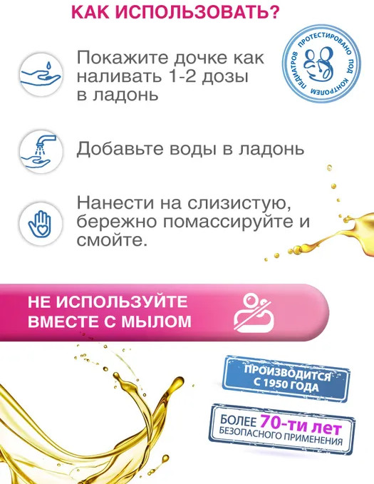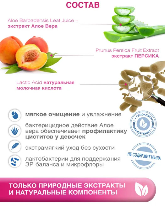 💳 Оплатить за товар можно при получении 🇰🇿 Есть бесплатная доставка по Казахстану от 1 дня 🎁 Копите бонусы с каждой покупки Средство для интимной гигиены Lactacyd Girl специально разработано для экстрамягкого очищения деликатной и чувствительной интимной зоны маленьких девочек. В состав входят тщательно подобранные мягкие ингредиенты для нежной детской зоны: экстракт персика, алоэ вера и натуральная молочная кислота. Экстракт персика обладает смягчающим и противовоспалительным свойствами. Благодаря воздействию на тонкую, чувствительную детскую кожу он питает и смягчает ее. |