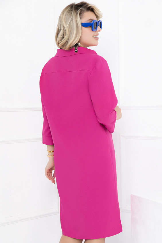 Настоящий тренд! Платье Вионе в лавандовом цвете — это модная доза витамина D! Платье-рубашка прямого силуэта из однотонной плательной ткани, которое подходит для любого вида фигуры. Рукав 3/4, оторочен манжетом.