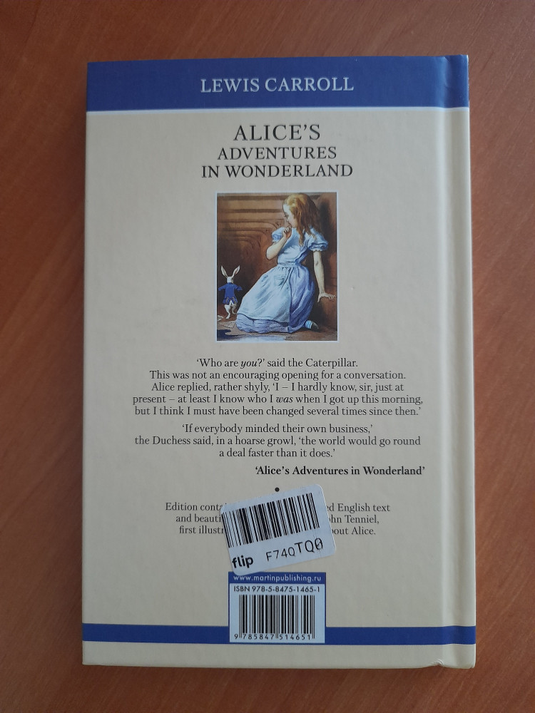 Alice`s Adventures in WonderlandВ данный момент этот товар отсутствует в продаже. Возможно, у нас найдется аналогичный или похожий товар здесь. Серия: Малая избранная классика (English) Сказка Льюиса Кэрролла о захватывающих приключениях Алисы стала, пожалуй, одной из самых известных книг, написанных на английском языке. Причудливо-остроумное, насыщенное головоломками и парадоксами повествование с первых строк погружает нас в удивительный мир абсурда Страны Чудес, в которой, кажется, все возможно. Прекрасные рисунки Джона Тенниела, первого иллюстратора книг Кэрролла об Алисе, помогут погрузиться в удивительную атмосферу сказки. |