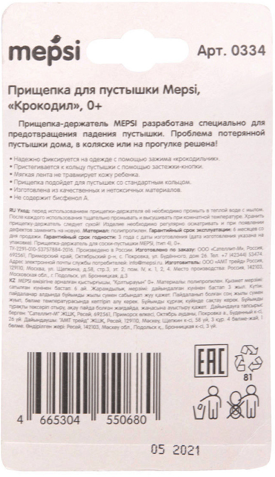Mepsi Прищепка-держатель для соски-пустышки «Крокодил»