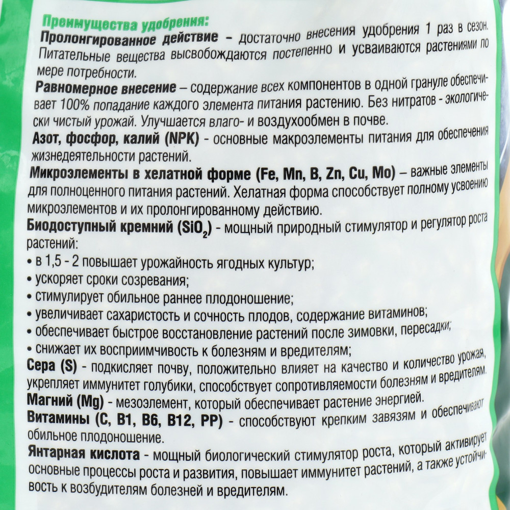 💳 Оплатить за товар можно при получении 🇰🇿 Есть бесплатная доставка по Казахстану 🎁 Копите бонусы с каждой покупки Комплексное удобрение создано лабораториями Bona Forte и сочетает преимущества обычных минеральных удобрений и биодоступного кремния. Кремний, наряду с азотом, фосфором и калием, является абсолютно необходимым элементом для полноценного развития растений. Природные цеолиты являются также источником мезо- и микроэлементов (кальция, магния, бора, цинка, марганца, молибдена), которые необходимы для полноценного питания растений. |