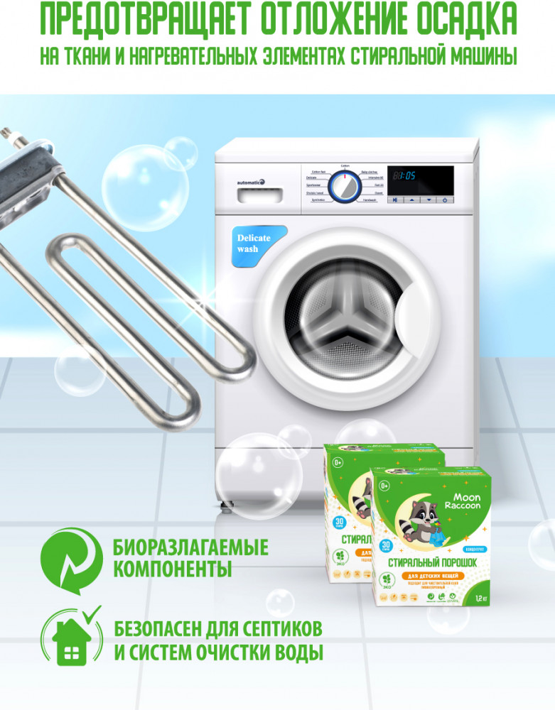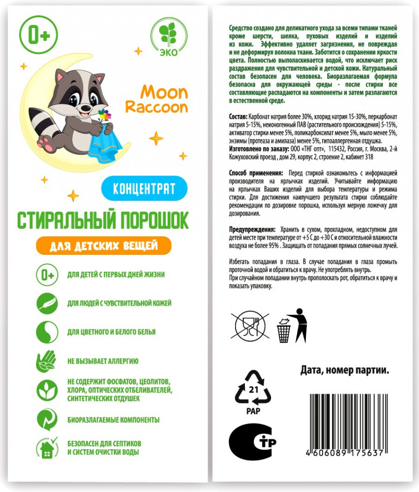 Moon Raccoon Порошок стиральный для детских вещей-38% +30