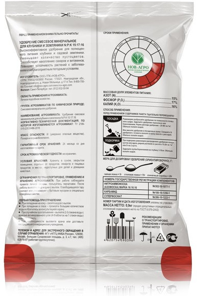 Нов-Агро Удобрение комплексное для клубники и земляники-25% +40