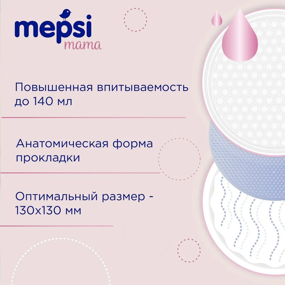 Накладки на грудь Mepsi — выбор современной мамы, которая ценит уверенность и комфорт даже в такой непростой период, как грудное вскармливание. Каждая прокладка дополнительно скреплена и упакована для еще большей гигиеничности. Надежные липучки крепко фиксируют прокладку в течение всего дня (размер каждой прокладки: 130×130 мм.).
