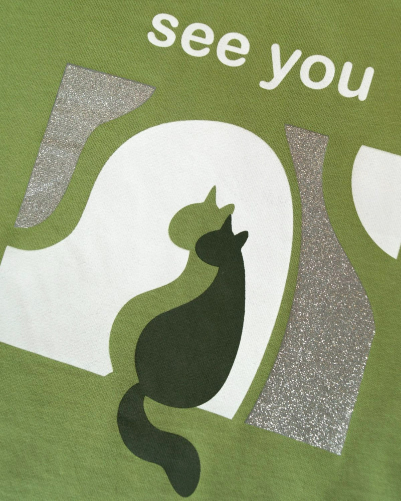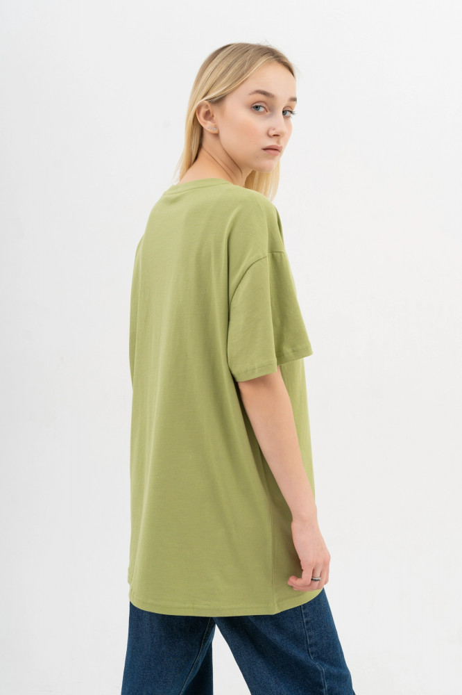 Футболка большемерка. Взяла 48/L..большевата, но не критично. Кто любит оверсайз...будет класс. Принт-наклейка, смотрится отлично. Материал -100% х/б. Качество хорошее.