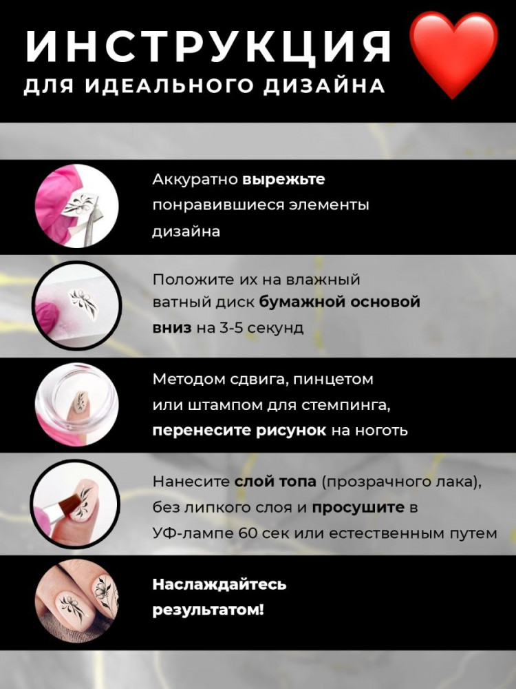 💳 Оплатить за товар можно при получении 🇰🇿 Есть бесплатная доставка по Казахстану от 1 дня 🎁 Копите бонусы с каждой покупки Создавай свои собственные дизайны для ногтей вместе с наборами от «Priority». Наклейки на ногти прекрасно ложатся на ноготок так как имеют клеевую основу и делают ваш маникюр неповторимым. Наши наклейки на ногти прекрасно дополнят ваш маникюр. Большой выбор красочных рисунков не оставит равнодушной ни одну модницу и ее подруг. Ты можешь менять образ так часто, как пожелаешь. |