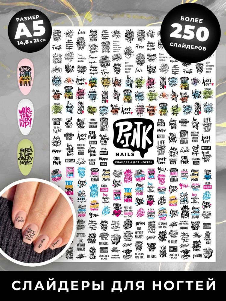Pink Nails Слайдеры для ногтей «Надписи»-25% +24