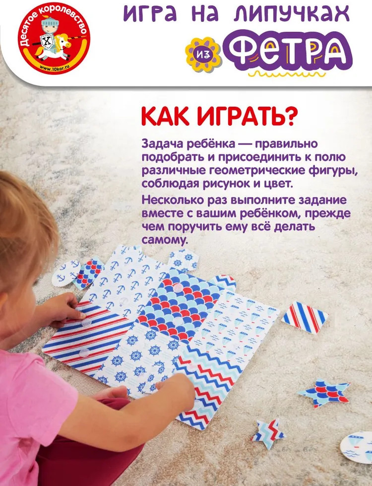💳 Оплатить за товар можно при получении 🇰🇿 Есть бесплатная доставка по Казахстану от 1 дня 🎁 Копите бонусы с каждой покупки Игра из фетра на липучках по методике Сегена от «Десятого королевства» — это интересный обучающий набор, позволяющий развить в ребёнке полезные способности. |