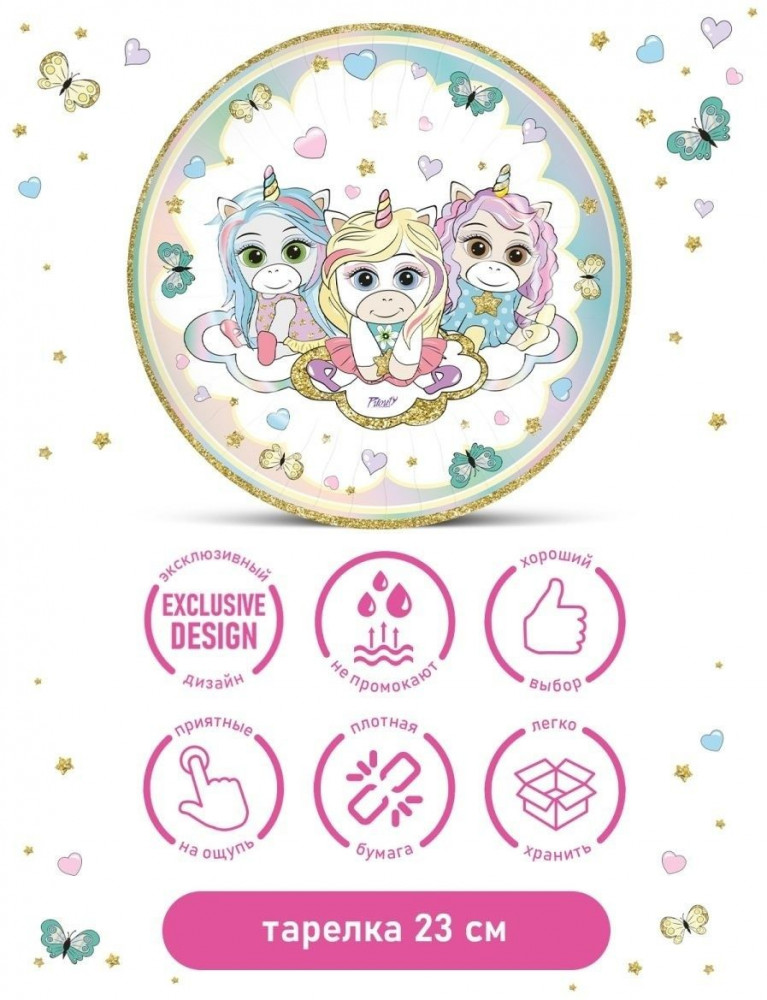 PrioritY Набор тарелок одноразовых «Малышки-единорожки»-24% +9