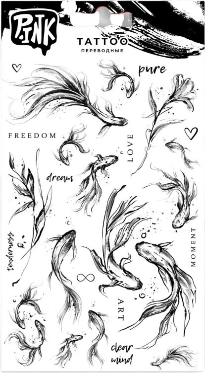 Pink Наклейки-тату переводные «Цветы и рыбы»В данный момент этот товар отсутствует в продаже. Возможно, у нас найдется аналогичный или похожий товар здесь. Пожалуй это самая универсальная татуировка, только от Вас зависит, куда Вы её переведете. Универсальный размер данной тату и неповторимый эскиз позволяет украсить любую часть вашего тела: предплечье, плечо, грудь, лопатку, рёбра, шею, бедро, икру, голень, живот. Возможность сочетать несколько эскизов в одной стилистике позволяет собрать индивидуальный сет на вашем теле и удивить всех вашим образом. |