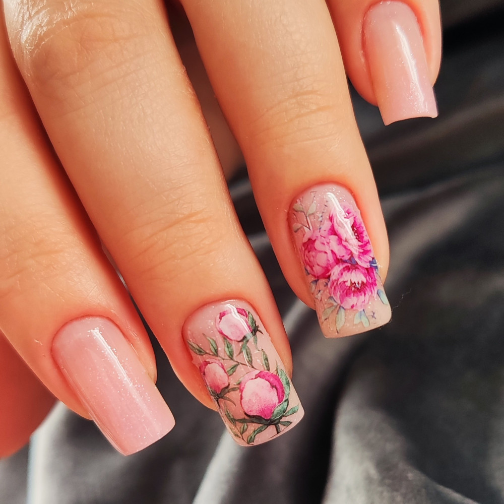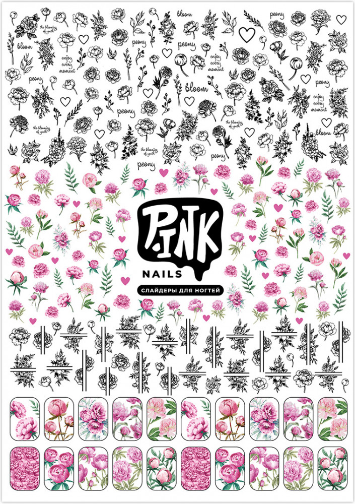 Pink Nails Слайдеры для ногтей «Пионы»+54 рисунки разнообразие дизайнов
