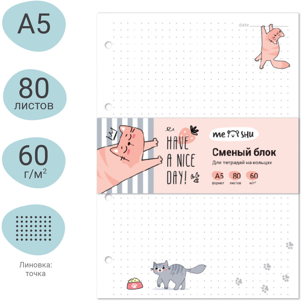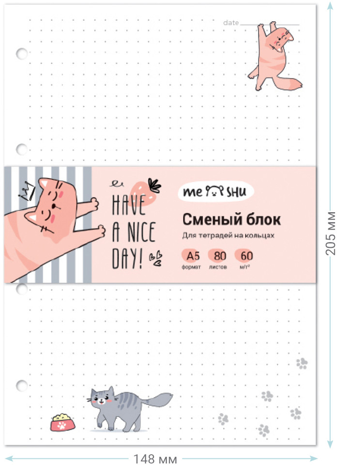 Meshu Сменный блок «Have a nice day»красивое оформление качество бумаги кошачьи принты расположение принтов В данный момент этот товар отсутствует в продаже. Возможно, у нас найдется аналогичный или похожий товар здесь. Сменный блок для тетрадей с кольцевыми механизмами. Формат А5, 80 листов. Офсетная бумага плотность 60 г/м² в точку, с дизайнерским блоком. Листы скреплены стрип-лентой и так же упакованы в т/у пленку. Цветной дизайн блока и линовка в точку поднимет настроение, и ваша тетрадь станет незаменимым помощником. |