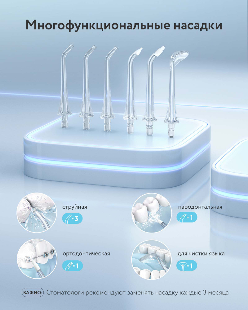 отлично держит заряд (у меня он держит несколько недель), хорошо прочищает зубы и брекет-системы достаточно много насадок много место не занимает можно брать с собой по инструкции все понятно