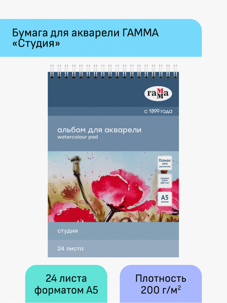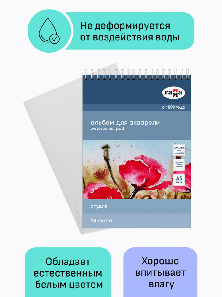 💳 Оплатить за товар можно при получении 🇰🇿 Есть бесплатная доставка по Казахстану от 1 дня 🎁 Копите бонусы с каждой покупки Серия: Студия В альбомах Гамма «Студия» используется бумага плотностью 200 г/м2 средней зернистости марки А, изготовленная из 100% целлюлозы на заводе «Гознак» без использования оптических отбеливателей. Бумага обладает естественным белым цветом, идеально подходит для водных техник, хорошо впитывает влагу, не деформируется от воздействия воды. Благодаря среднезернистой фактуре и плотности она отлично подходит под многослойные сложные работы карандашами, а также для смешанных техник. Бумага хорошо впитывает влагу, не коробится от воздействия воды. Альбомы брошюрованы спиралью по короткой стороне. Последняя страница альбома представляет собой твердую подложку, служащую в качестве планшета. Можно использовать на пленэре. |