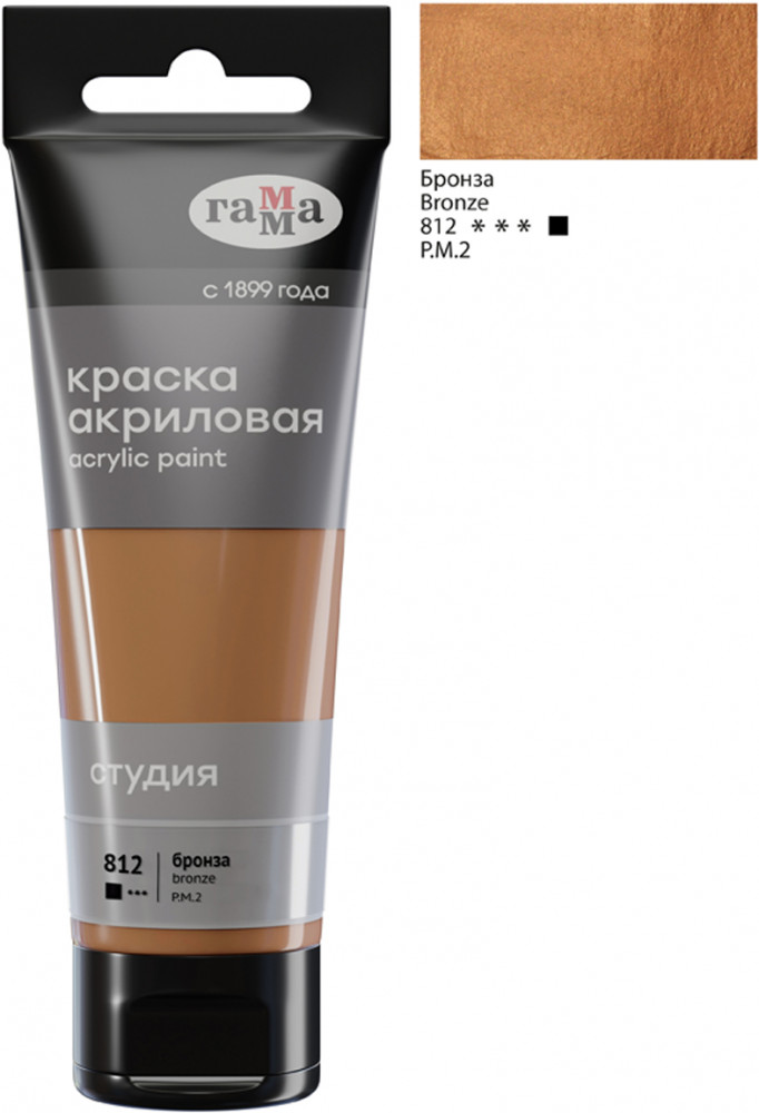Акриловая краска серии «Студия» бронза предназначена для художественно-живописных и декоративно-прикладных работ. Главные отличия: насыщенный цвет и металлический отблеск краски, высокая адгезия, прочность красочного слоя. После высыхания краска становится глянцевой, практически не темнеет, специальная добавка позволяет максимально раскрыть красоту цвета. Художественный акрил прекрасно разносится, подходит для бумаги, картона, грунтованного холста, дерева, стекла, кожи, ткани. Время высыхания: от 10 минут до 1 часа в зависимости от толщины слоя. Прозрачный корпус тубы позволяет увидеть цвет краски, а удобная крышка флип-топ предотвращает высыхание.