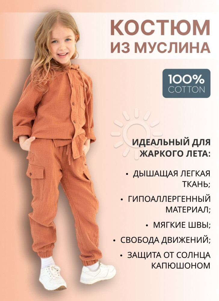 Костюм не плохой. Легкий хлопок,хороший пошив. На штанишках тугая резинка,что для ребенка не комфортно. А самое главное-цена! Отечественный производитель,а цена очень крутая,сильно завышена . Поэтому отказ!