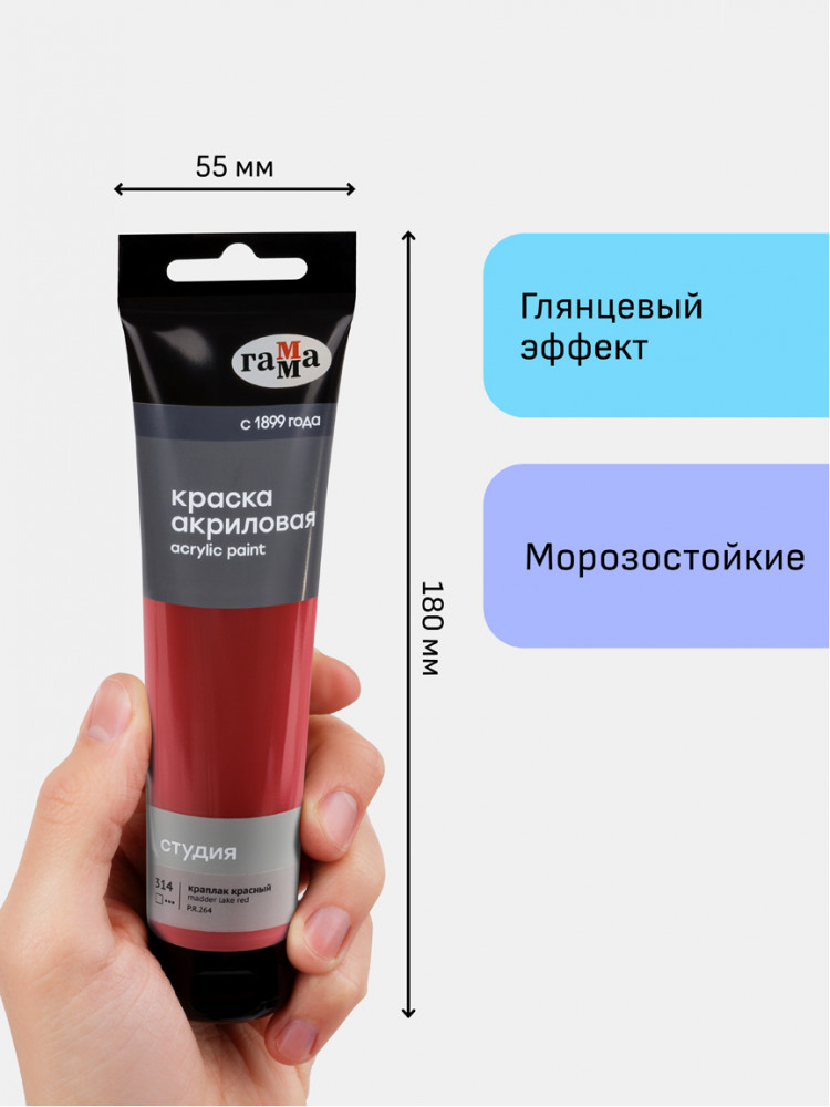Гамма Краска акриловая, 314 краплак красный
