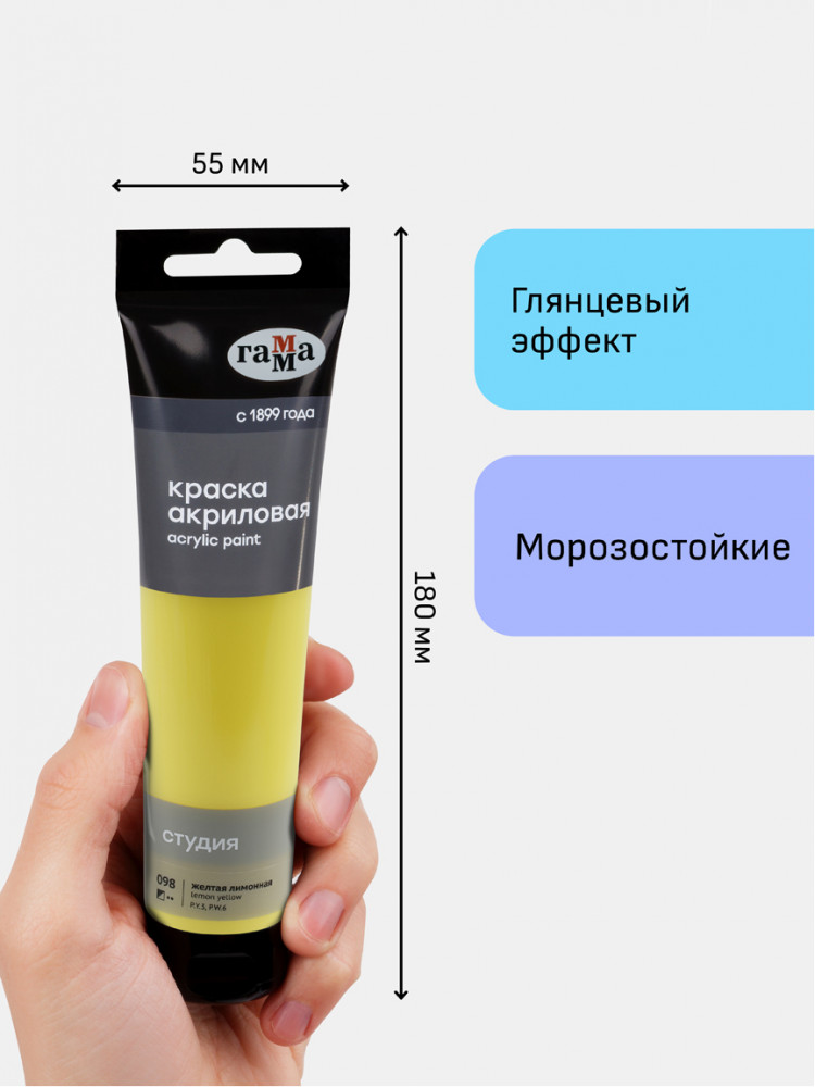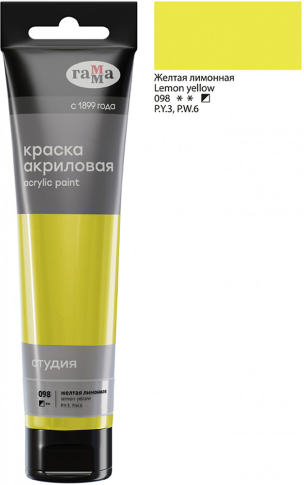 Гамма Краска акриловая, 098 желтый лимонный