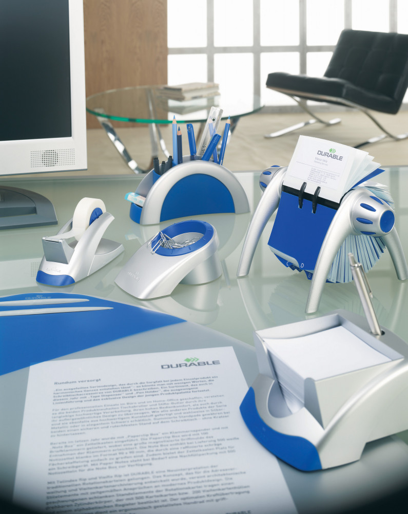 Durable Подставка для бумажного блокаВ данный момент этот товар отсутствует в продаже. Возможно, у нас найдется аналогичный или похожий товар здесь. Серия: Vegas Элегантная подставка для бумажного блока с местом для ручки или карандаша. Бумажный кубик в комплекте (500 листов, 90×90 мм). Скошенный дизайн располагает бумажный куб под углом для удобной работы. Прекрасно подойдет для оформления рабочего стола. |