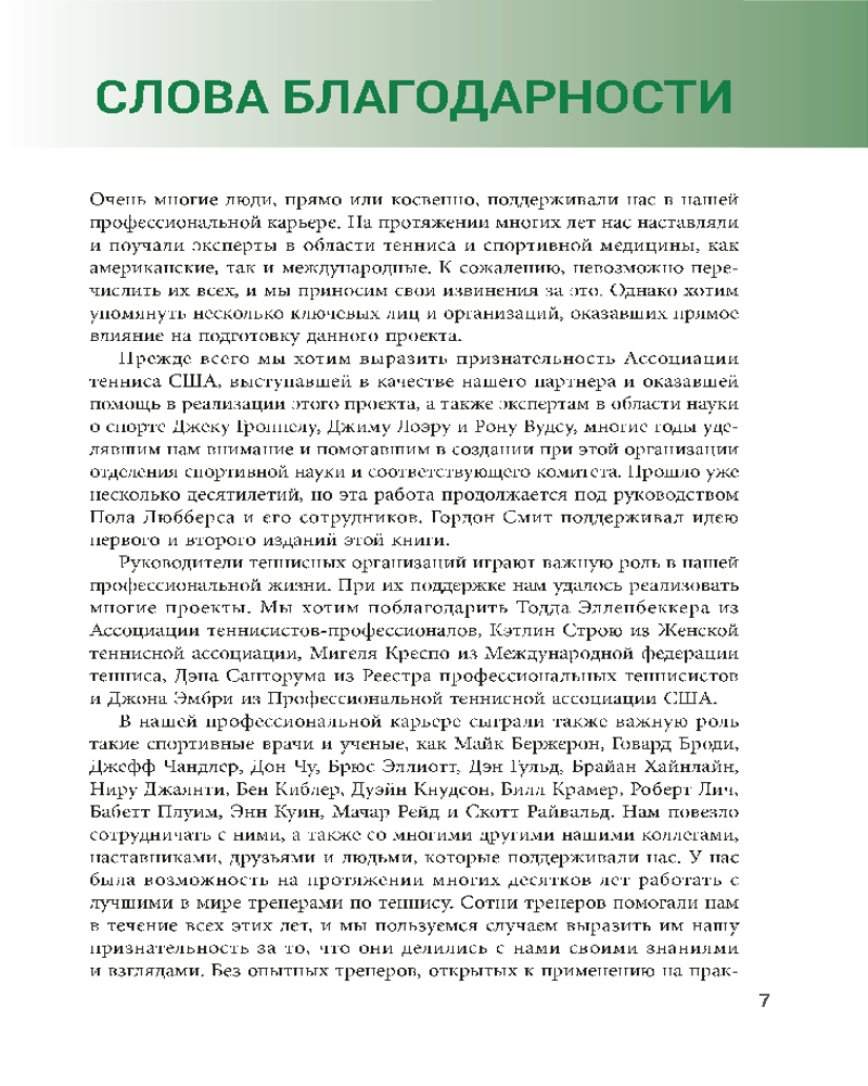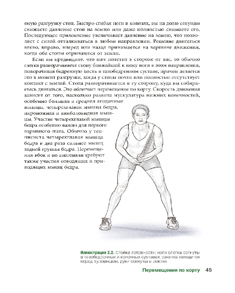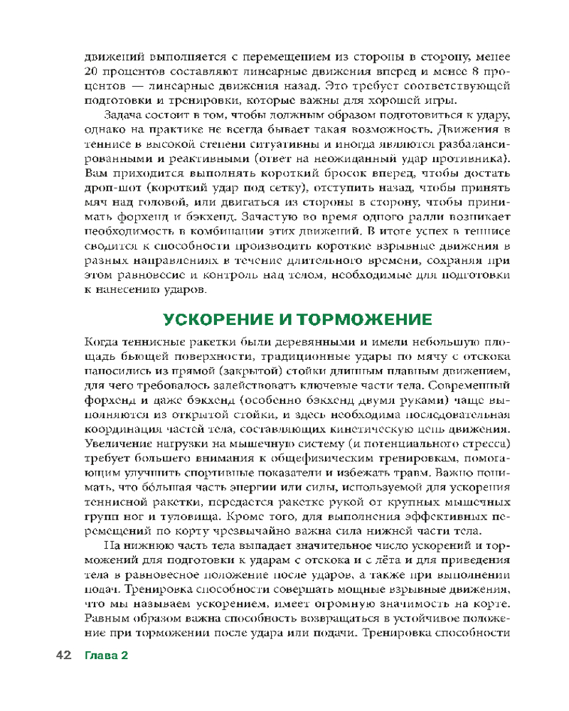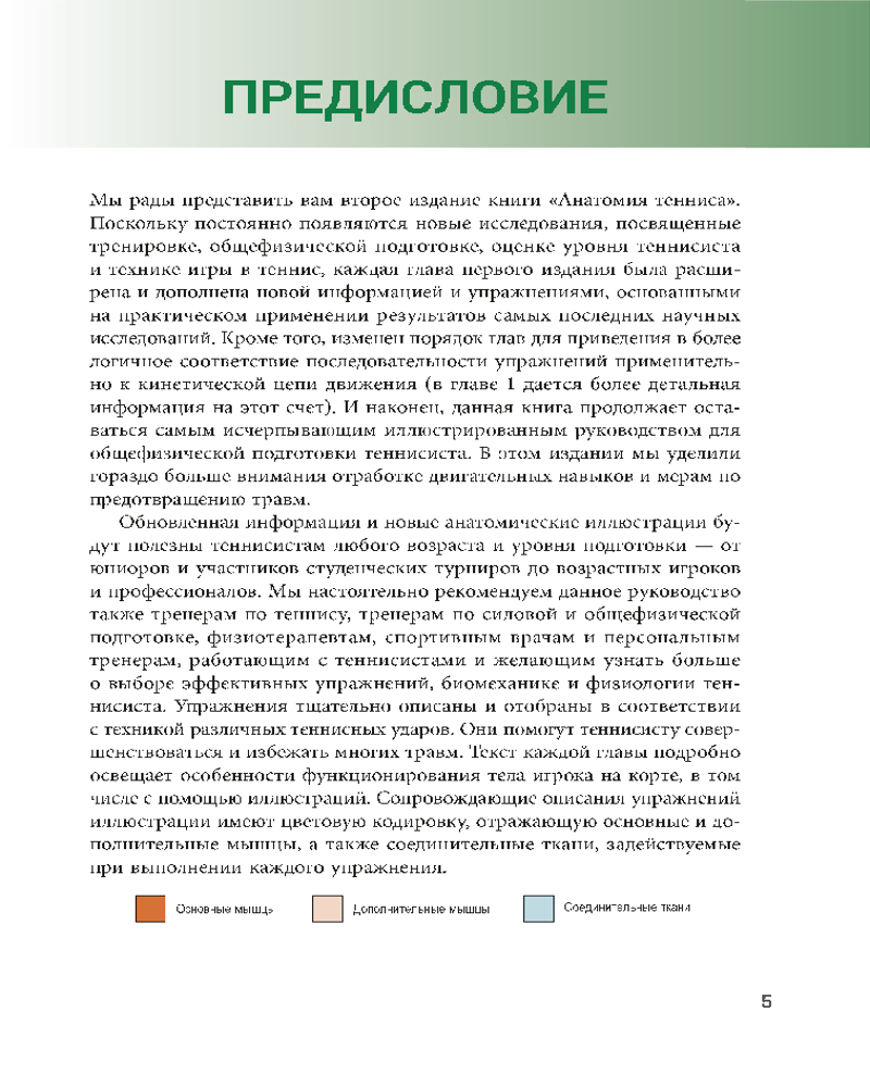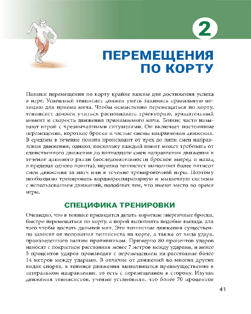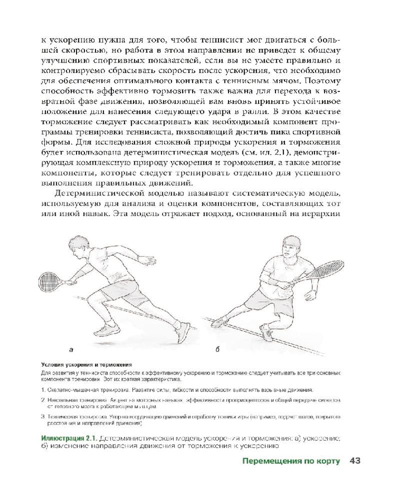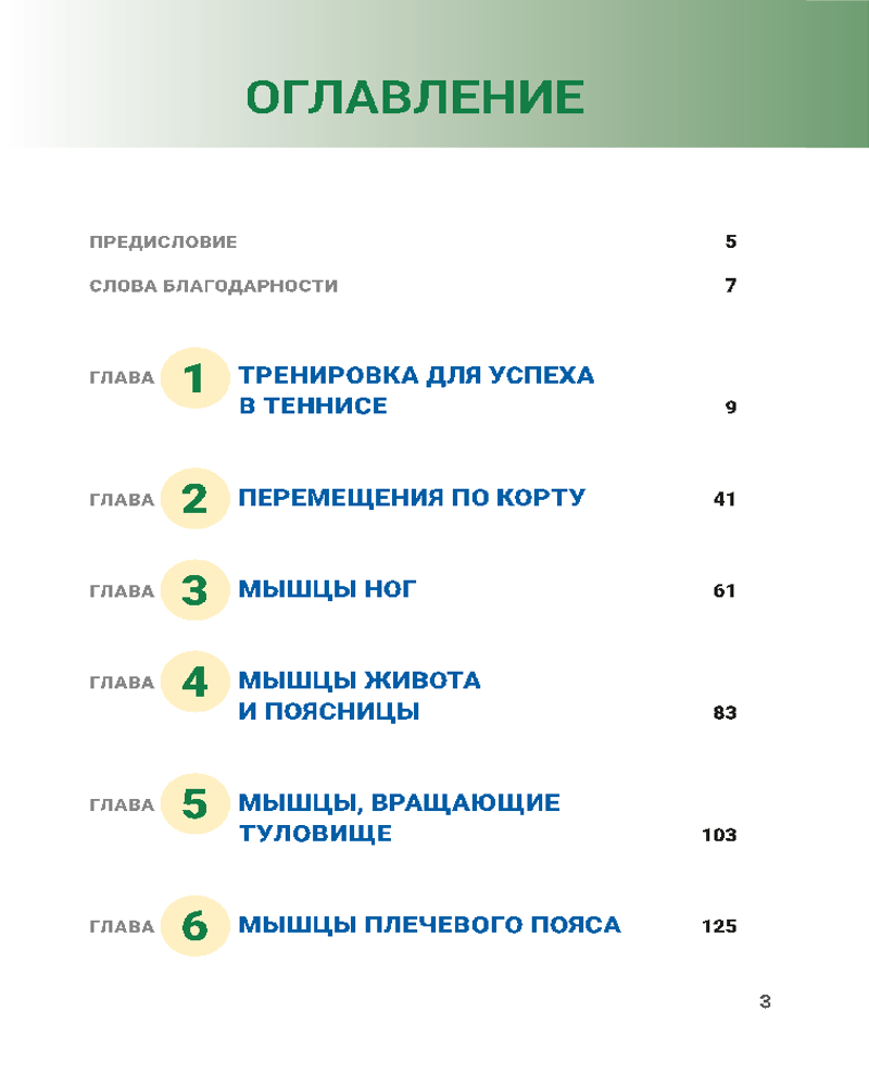 Каждое упражнение сопровождается пошаговыми инструкциями и полноцветными анатомическими иллюстрациями, на которых изображены мышцы, задействованные в выполнении движения. Упражнения для ног, туловища, плеч, спины, рук и запястий — наряду с информацией о механике ускорения и торможения, укреплении мышц, отвечающих за вращение, и навыках выполнения латеральных движений — помогут вам перемещаться по корту быстро и эффективно. Иллюстрации демонстрируют, какие мышцы активно работают при выполнении форхендов, бэкхендов, подач, ударов над головой, с отскока и с лёта, и ясно дают понять, каким образом каждое из упражнений связано с игрой.