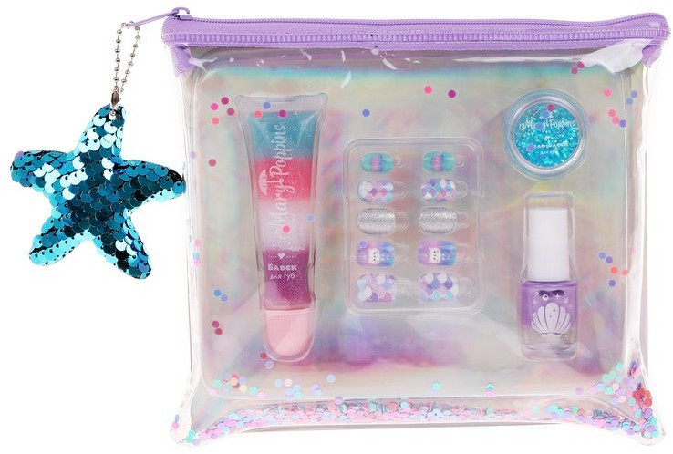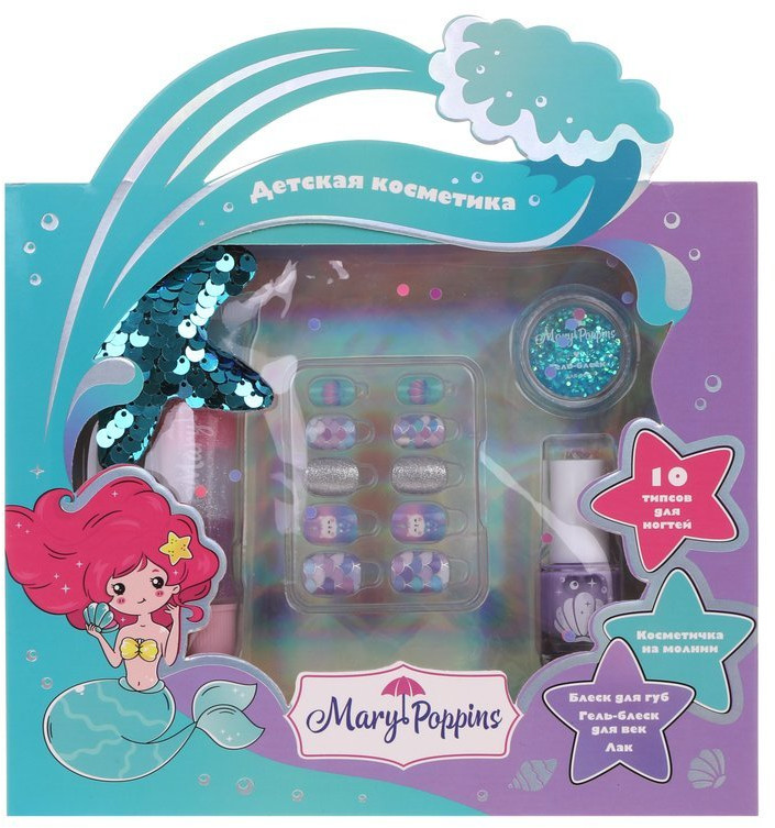 Набор детской декоративной косметики «Русалка» станет замечательным подарком для девочек от 5-ти лет и старше. Он исполнит мечту каждой маленькой модницы — иметь свою собственную косметику! С помощью набора девочка сможет потренироваться в тонком искусстве макияжа глаз и губ, а также декорирования ногтей.