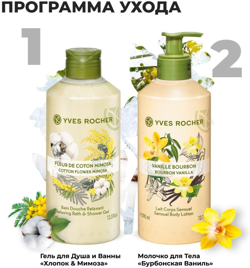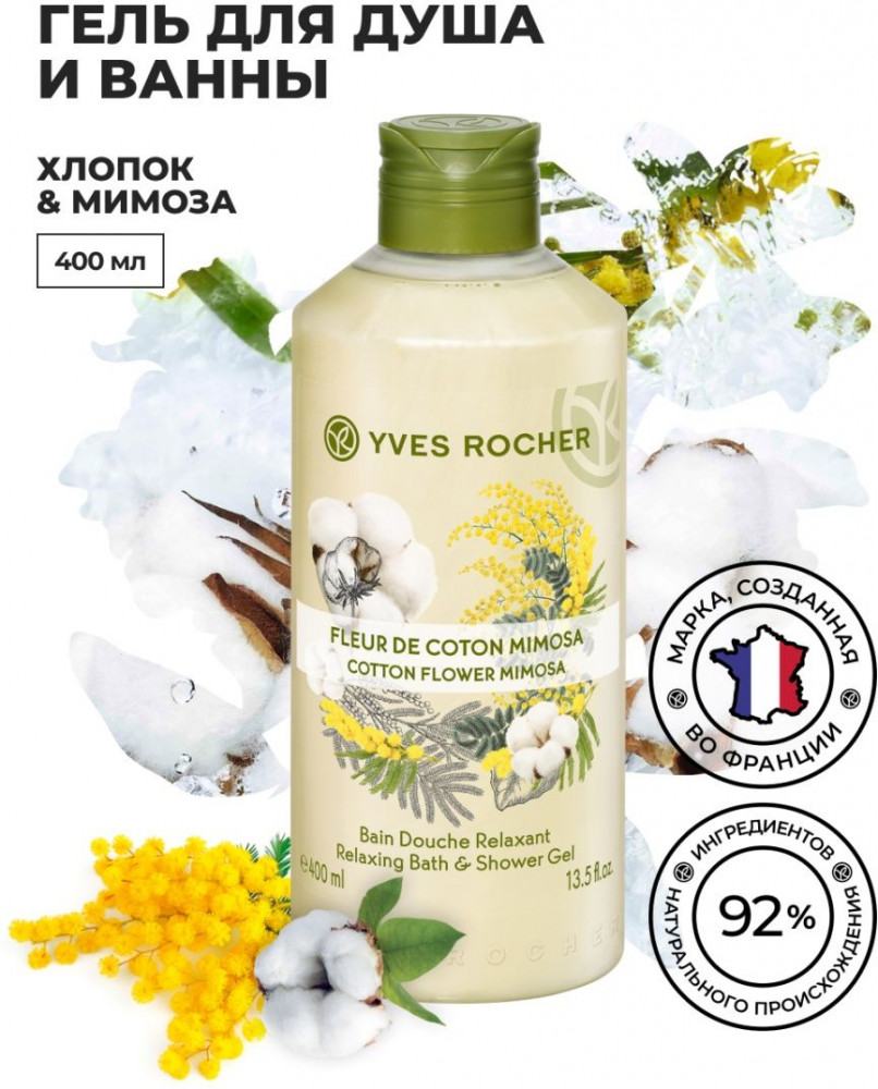Гель для душа и ванны «Хлопок и мимоза» | Yves Rocher