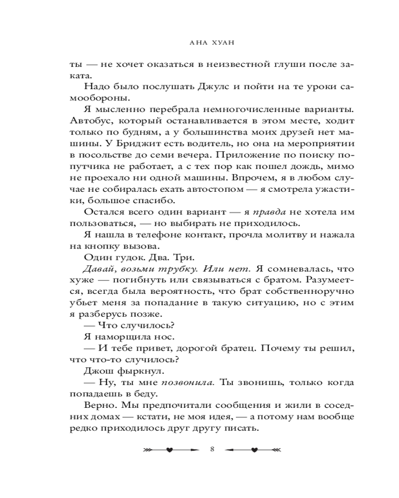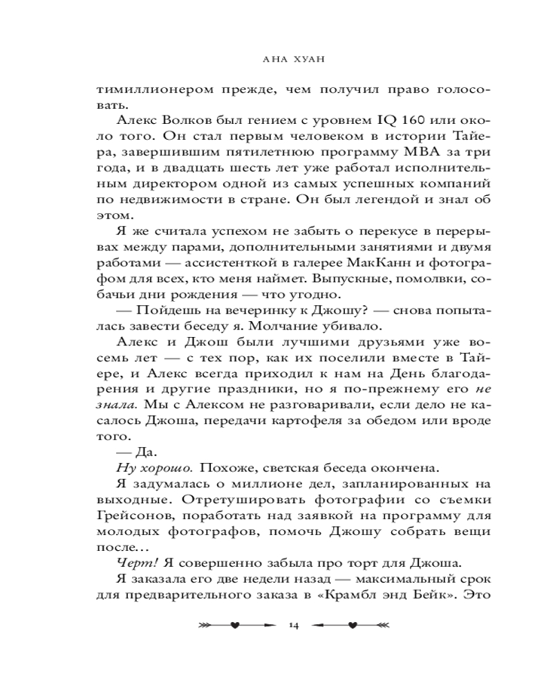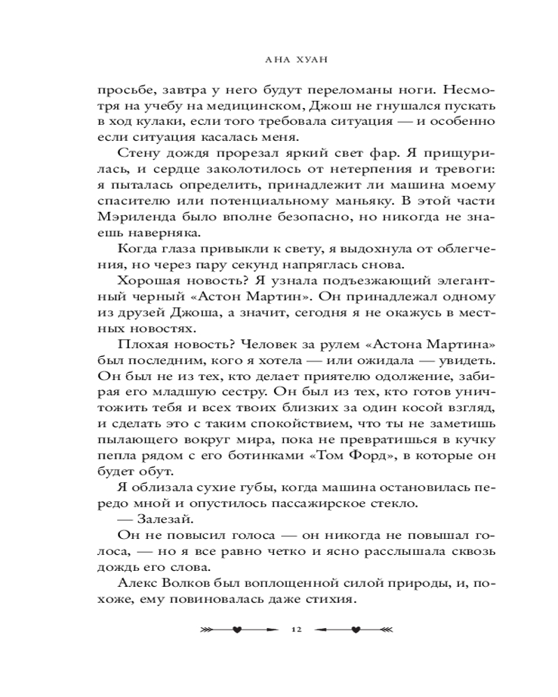 | Ана Хуанг — международный автор бестселлеров New York Times, USA Today и № 1 среди авторов бестселлеров Amazon. Наиболее известная своей серией Twisted, она пишет «Новый взрослый» и современный роман с восхитительно альфа-героями, сильными героинями и большим количеством пара, тоски и обморока. Ее книги были проданы для перевода более чем двум десяткам иностранных издателей и представлены в таких изданиях, как NPR, Cosmopolitan, Financial Times и Glamour UK. |