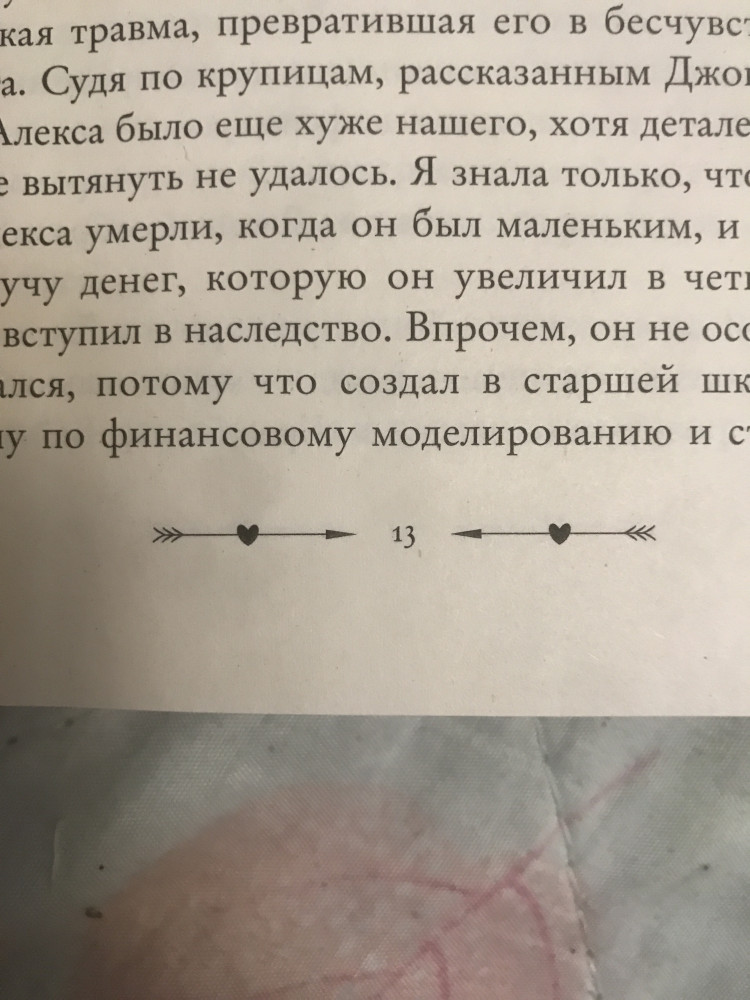Плюсы: 1. Цена - полноразмерная книга с газетными листами за такую цену - редкость. 2. Оформление - как написано, в описании, это первое издание, поэтому есть своего рода плюшки. На развороте есть изображения главных героев, внутри бумажная закладка с плейлистом. Минусы: 1. Картонные, типичные герои, их не раскрывают, они не развиваются 2. В какой то момент начинается экшн, страница и экшн закончен. Динамики никакой. Да, это про любовь и доп.события для скрашивания, но если уж есть, то хотелось бы видеть полную яркую картину.(Пенелопа Дуглас, наверно, в этом плане лучшая по добавлению экшена) 3. Вот этот момент под вопросом, но в аннотации указано, что главный герой программист гений, пока читала ни строчки кода он не написал, я там даже слова программист не видела. 4. События развиваются очень быстро, автор хочет их побыстрее сблизить. В целом, книга не стоит потраченного времени. Оформление - крутое, но содержание из категории прочитал и сразу забыл.