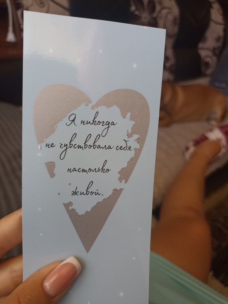 Книга пришла целая, без повреждений. Внутри есть закладка с плейлистом. Книгу пока не читала. Но визуально все нравится 🤭