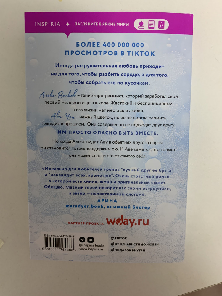 💳 Оплатить за товар можно при получении 🇰🇿 Есть бесплатная доставка по Казахстану от 1 дня 🎁 Копите бонусы с каждой покупки Серия: Cupcake. Бестселлеры Буктока. Ана Хуан Иногда разрушительная любовь приходит не для того, чтобы разбить сердце, а для того, чтобы собрать его по кусочкам. Алекс Волков - гений-программист, который заработал свой первый миллион еще в школе. Жестокий и беспринципный, в его жизни нет места для любви. Ава Чен - нежный цветок, но ее не смогла сломить трагедия в прошлом. Они совершенно не подходят друг другу. Им просто опасно быть вместе. Но когда Алекс видит Аву в объятиях другого парня, он становится тотально одержим ею. И Аве кажется, что только она может спасти его от самого себя. |