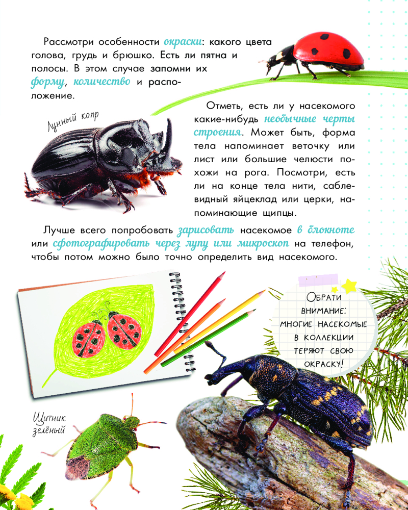 Удивительные насекомыеВ данный момент этот товар отсутствует в продаже. Возможно, у нас найдется аналогичный или похожий товар здесь. Серия: Моя первая энциклопедия природы Книга известного энтомолога, сотрудника Сколковского института науки и технологий, популяризатора науки и фотографа дикой природы Ильи Гомыранова рассказывает о тех насекомых, которых мы можем увидеть рядом с собой, выезжая на дачу или даже не выходя из дома, в городской квартире. Чаще всего мы знаем их имена: муха, комар, пчела, божья коровка, но дальше этого дело не идет. Поэтому мы решили восполнить пробелы в наших знаниях и придумали энциклопедию-определитель, в которой вы найдете рассказы о самых разных хорошо знакомых «в лицо», и одновременно, неизвестных насекомых. Автор представит их с самых разных точек: образ жизни, питание, развитие в течение жизни, интересные факты. Кроме того, книга пригодится школьникам на занятиях, а также в путешествиях, во время отдыха. |
