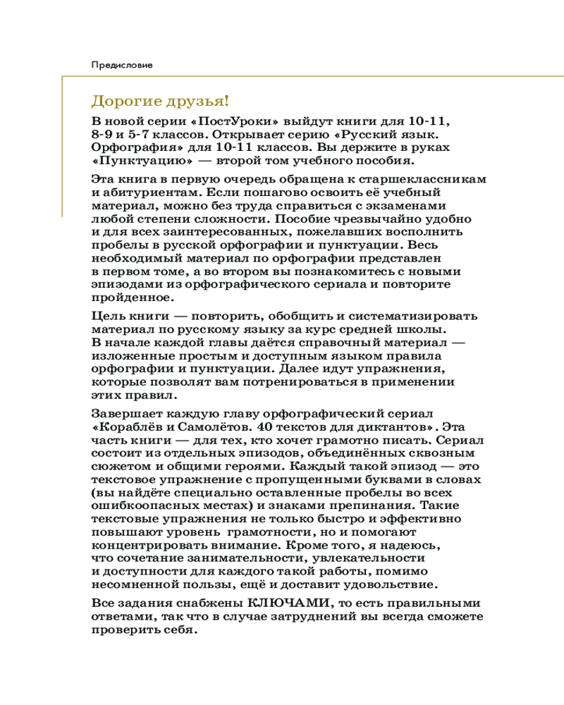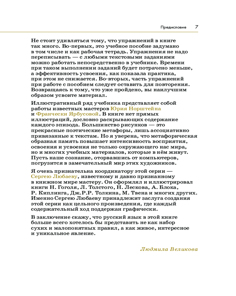 На страницах книги читатель найдёт правила, упражнения, тесты и ключи (ответы к упражнениям). Это учебник, состоящий из отдельных эпизодов со сквозным сюжетом и общими героями. Забавные ситуации придуманы Людмилой Великовой, а чудесные иллюстрации сделал художник Юрий Норштейн, автор мультфильмов «Ежик в тумане» и «Сказка сказок», которые признаны лучшими в мире.