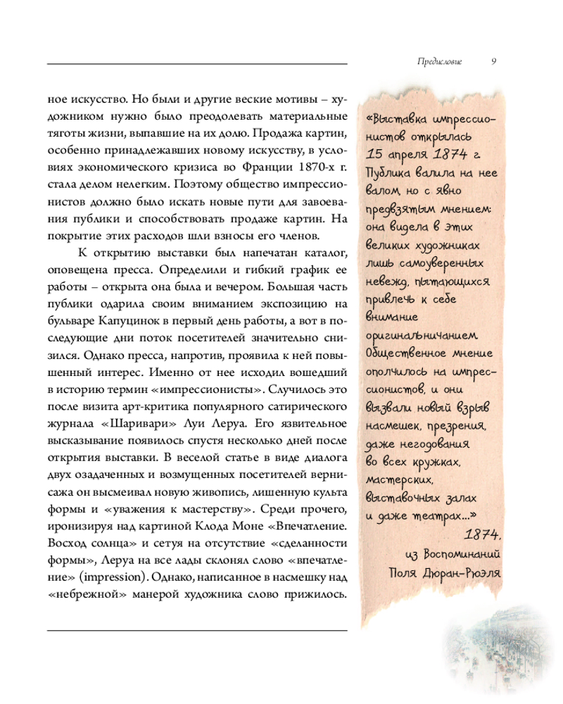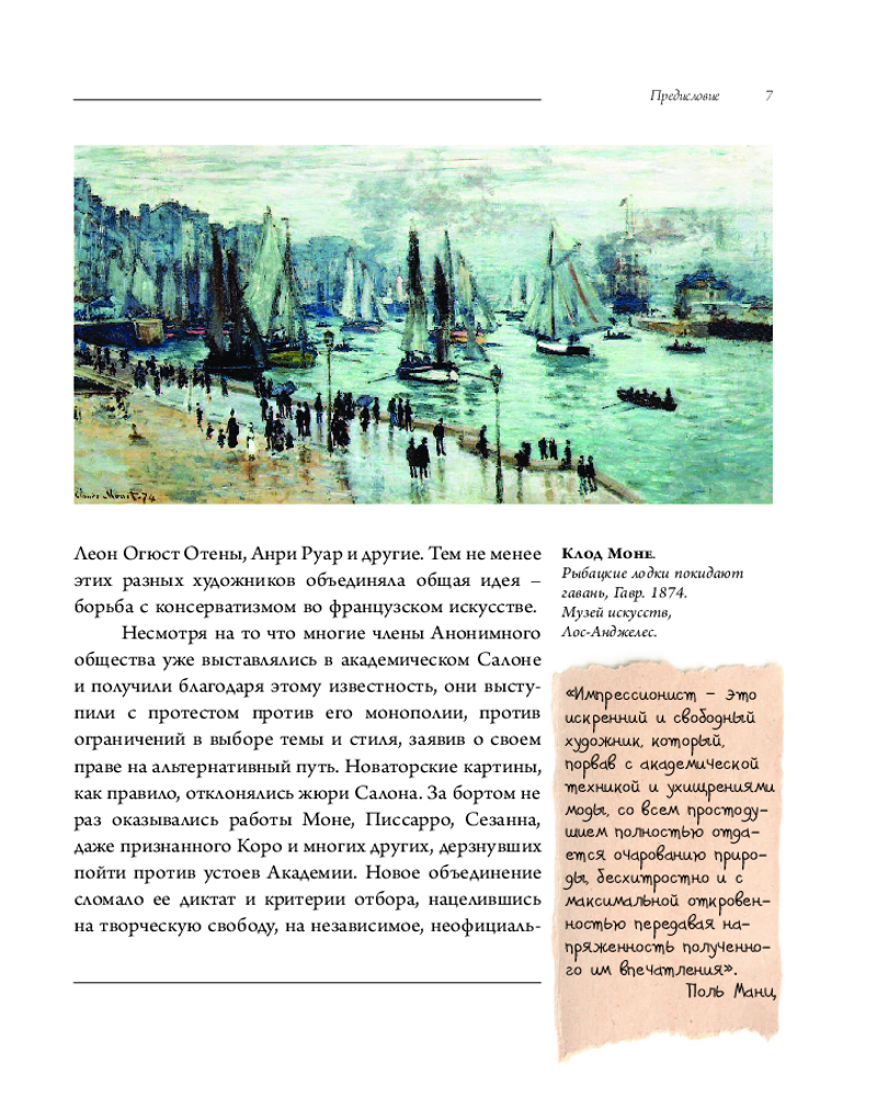 💳 Оплатить за товар можно при получении 🇰🇿 Есть бесплатная доставка по Казахстану от 1 дня 🎁 Копите бонусы с каждой покупки Серия: Галерея мировой живописи Весной 1874 г. группа независимых французских художников устроила в Париже собственную выставку. Она стала событием необыкновенным, неожиданным, настоящим бунтом против устоев художественной жизни Франции. Получившая название «Первая выставка импрессионистов», обозначила существование оппозиции официальному искусству и открытое противостояние с ним. Живописцы-новаторы применяли мягкие и несмешанные цвета, добиваясь особого эффекта от оптических смешений красок и ощущения ожившей природы. Им удалось выработать новую палитру и новую технику, пытаясь зафиксировать игру и вибрацию света. Обыденные, часто прозаические сюжеты современной жизни превращались у импрессионистов в прекрасное, в «чудное мгновенье», часто мимолетное. |