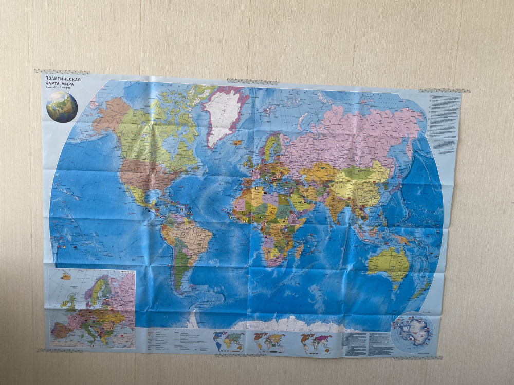 Яркая карта, ребенку понравилась, материал тонковат, но если на стене будет висеть, то нормально