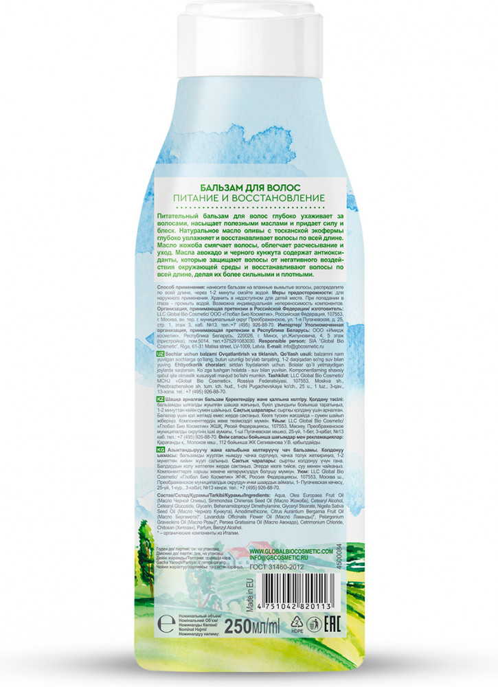 Global Bio Cosmetic Бальзам для волос «Питание и восстановление»